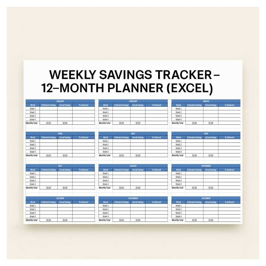 Weekly Savings Tracker β 12-Month Planner (Excel)